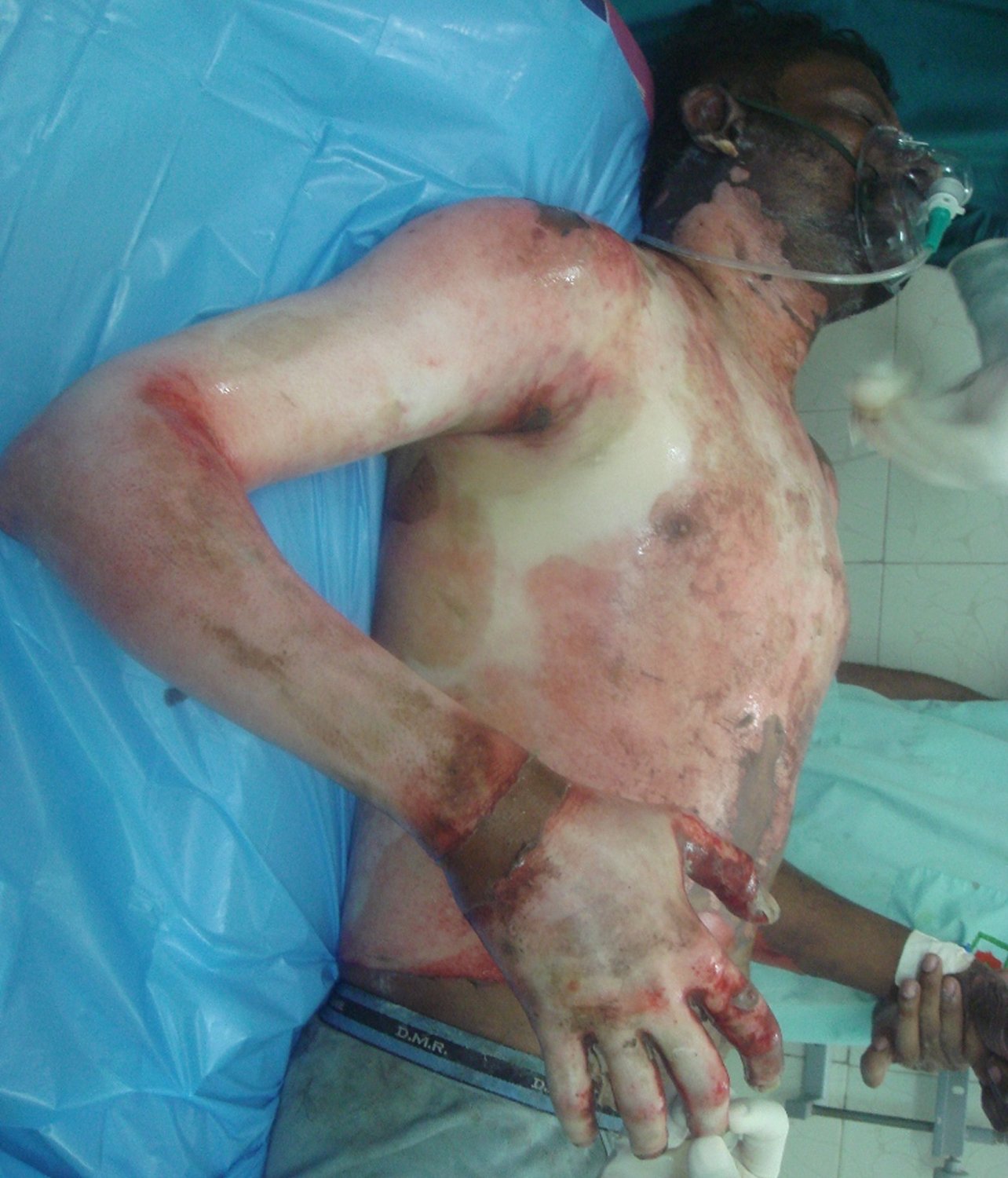 Flame burns are caused by direct exposure to fire and can result in deep tissue damage. These burns often involve the epidermis, dermis and deeper structures, causing severe pain and potential scarring and contractures. Immediate treatment focuses on: