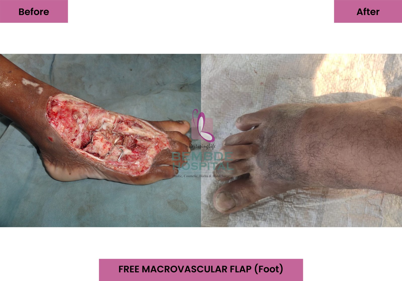 Since 1999, Bembde Hospital has been a leading center for reconstructive microsurgery in Central Maharashtra. Under the leadership of Dr. Ramakant Bembde, a renowned microsurgeon trained at Tata Memorial Hospital and Ganga Hospital, we have set benchmarks in performing complex free flap procedures with high success rates and minimal complications.